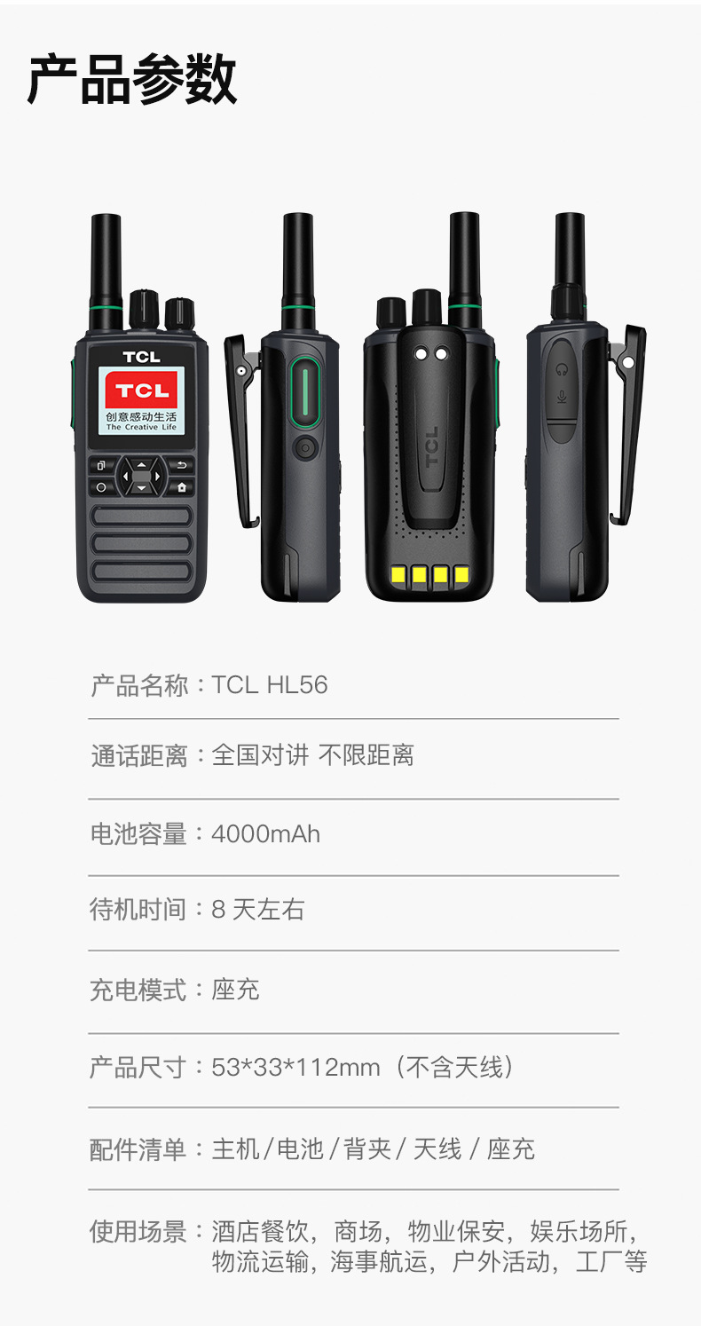 TCL公網防爆對講機HL56全國5000公里工地戶外化工廠加油站插卡4G